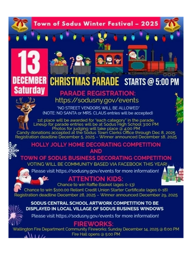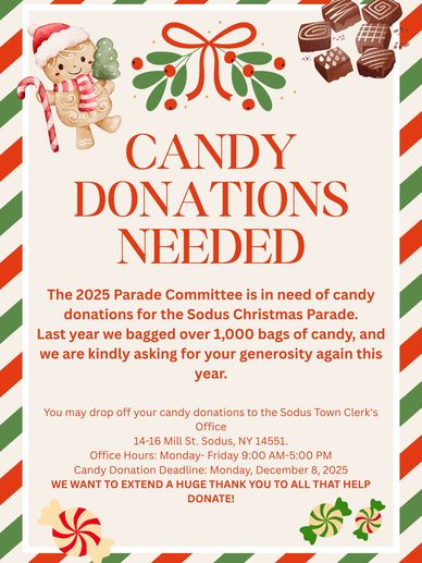 The Sodus Municipal Offices will be closed 11-26-2025 & 11-27-2025 for Thanksgiving